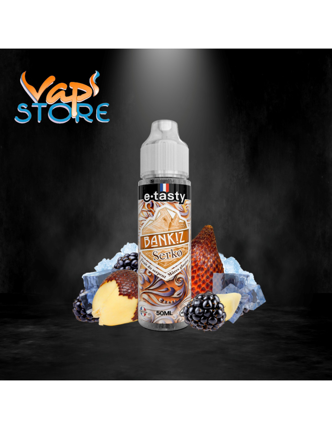 Issu de la gamme venue du nord Bankiz Extra Frais, pensée et fabriquée en France par notre partenaire orléanais e.tasty, le Serko est un e-liquide 50ml contenant des arômes de mûres glacées et de fruit du serpent, le tout rehaussé en fraîcheur extrême !